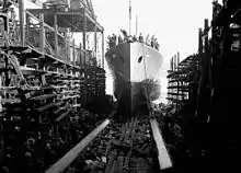 The River-class frigate was designed by William Reed of Smith's Dock Company of South Bank-on-Tees. Originally called a "twin-screw corvette", its purpose was to improve on the convoy escort classes in service with the Royal Navy at the time, including the Flower-class corvette. The first orders were placed by the Royal Navy in 1940 and the vessels were named for rivers in the United Kingdom, giving name to the class. In Canada they were named for towns and cities though they kept the same designation.[6] The name "frigate" was suggested by Vice-Admiral Percy Nelles of the Royal Canadian Navy and was adopted later that year.[7]