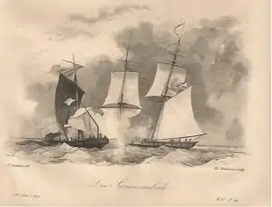 Commander Robb drowned on 27 February off the Isle of May when a gale of wind washed him overboard.[18] He was assisting in throwing her guns overboard to lighten her.[lower-alpha 3]
