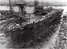 The aircraft carrier's keel was laid by Swan Hunter at Wallsend on 7 December 1978. She was launched on 2 June 1981[15] sponsored by The Queen Mother and commissioned on 1 November 1985. Originally intended as Indomitable in line with her sister ships Invincible and Illustrious, public resentment at the scrapping of the previous Ark Royal (the UK's last large aircraft carrier up to that date) in 1980 led the Royal Navy to announce that the name would be revived on the new ship. The unfinished Ark Royal was reportedly offered for sale to the Royal Australian Navy in 1981.[16] HMS Invincible was later offered for sale instead.