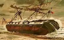 On 28 September 1839 she sailed from Quebec with 82 American patriots and 58 French prisoners from Lower Canada who were convicts and part of the Upper Canada Rebellion in 1838. On 12 October a conspiracy to murder the ship's crew was attempted, but was discovered, and the rebels secured. The mutiny was reported in the Morning Chronicle on 22 November, and much later in the Sydney Herald on 22 April 1840.[13] The Americans were transported to Hobart, Tasmania and the French convicts were brought to Sydney, New South Wales.[14]