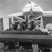 At the start of the Second World War in 1939, Cumberland was assigned to 2nd Cruiser Squadron Force G, the South American Division.[2] At the start of December she was forced to self-refit in the Falkland Islands, thus depriving the force of their strongest unit. Without her, HMS Exeter, Ajax and Achilles engaged the German raider Admiral Graf Spee in the Battle of the River Plate on 13 December. Cumberland received a garbled indication that a contact was being made and moved north to reinforce, arriving at the River Plate at 22:00 14 December, after steaming 1,014 nautical miles in 34 hours - 29.8 knots (55.2 km/h; 34.3 mph). Admiral Graf Spee had put into neutral Montevideo and was trapped there, as Cumberland along with Ajax and Achilles (Exeter having been heavily damaged) patrolled the estuary, resulting in Admiral Graf Spee being scuttled by her crew on 17 December.