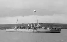 Dorsetshire was laid down at the Portsmouth Dockyard on 21 September 1927 and was launched on 21 January 1929. After completing fitting-out work on 30 September 1930 she was commissioned into the Royal Navy.[1] Upon commissioning, Dorsetshire became the flagship of the 2nd Cruiser Squadron.[3] In 1931, she was part of the Atlantic Fleet during the Invergordon Mutiny. During the incident, some of her men initially refused to assemble for duty but after an hour and a half, the ship's officers had restored order and no further unrest troubled Dorsetshire during the mutiny.[4] From 1933–1935, she served as the flagship for the Commander-in-Chief, Africa; she was replaced by Amphion.[5] By September 1935, Dorsetshire was assigned to the China Station.[6] From 1–4 February 1937, Dorsetshire, the aircraft carrier Hermes and the cruiser Cumberland participated in an exercise to test the defences of Singapore against a hypothetical Japanese attack.[7]