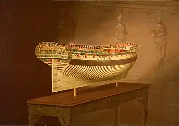 ![]() Painting of the hull model of HMS Enterprise by Joseph Marshall, 1777 | |