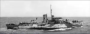 On 17 July 1945 she was returned to the Royal Navy. Laid up, she was and sold for civilian use in 1947 and converted into the Dutch whale-catcher Albert W. Vinke of 717 GRT in 1950.[2][16] Albert W. Vinke last appeared on Lloyd's Register in 1964–65.[10] The ship was broken up by South African Metal & Machinery Pty Ltd in Cape Town in February 1965.[16]