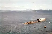 Captain Warburton-Lee was brought ashore but died after an hour from his head wounds. 139 other men managed to get ashore, although 26 were seriously wounded.[8] Captain Warburton-Lee was posthumously awarded the Victoria Cross.[10] Hardy was lifted off the beach at high tide and drifted to the head of Skjomen fjord where she capsized in shallow waters.[11] The wreck was still visible as late as 1963.[12]