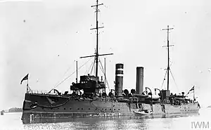 Along with HMS Intrepid and HMS Thetis she was selected to be used as a blockship during the Zeebrugge Raid. She was sunk at the entrance to the Bruges Canal to try and prevent it being used by German U-Boats.[2] She was subsequently broken up when the canal was cleared.