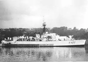 In June 1945 Loch Alvie was returned to the Royal Navy, paid off officially from the Royal Canadian Navy on 11 July and put into reserve at Sheerness.[3] Lock Alvie and Monnow were the only two Canadian ships of the war never to visit a Canadian port.[3]