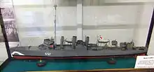 The destroyer served the Royal Navy as HMS Ludlow (G57) during World War II until decommissioning in June 1945. Following decommissioning, Ludlow was beached in the Firth of Forth off Yellowcraigs beach, Fidra, Dirleton, East Lothian, Scotland, on 15 July 1945 for use as a rocket target by Royal Air Force aircraft. It is reputed that the first salvo of rockets hit her just below the waterline and sank her. Her wreck lies off Yellowcraigs beach in 6 metres (20 ft) of water[2] and, although well broken up, her remains are still visible just above the surface at low tide.