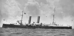 She took part in the fleet review held at Spithead on 16 August 1902 for the coronation of King Edward VII,[7] and later that month was off Ireland where she received the Japanese cruisers Asama and Takasago to Cork.[8]