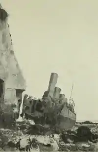 ![]() HMS Nubian aground on the South Foreland after her bows had been blown off in October 1916 | |