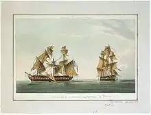 ![]() An 1805 watercolor (shown here in black and white) probably depicting HMS Phoenix in chase of Didon | |