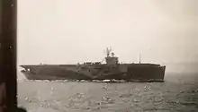 ![]() HMS Pursuer in March 1944. HMS Furious can be seen in the background | |