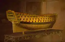 Meanwhile, Pasley had recovered 12 more guns in 1839, 11 more in 1840, and 6 in 1841. In 1842 he recovered only one iron 12-pounder, because he ordered the divers to concentrate on removing the hull timbers rather than search for guns. Other items recovered, in 1840, included the surgeon's brass instruments, silk garments of satin weave "of which the silk was perfect", and pieces of leather; but no woollen clothing.[16] By 1843 the whole of the keel and the bottom timbers had been raised and the site was declared clear.[17]