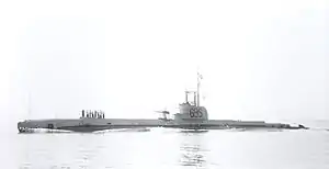 For surface running, the boats were powered by two 775-brake-horsepower (578 kW) diesel engines, each driving one propeller shaft. When submerged each propeller was driven by a 650-horsepower (485 kW) electric motor. They could reach 13.75 knots (25.47 km/h; 15.82 mph) on the surface and 10 knots (19 km/h; 12 mph) underwater.[4] On the surface, the second-batch boats had a range of 6,000 nautical miles (11,000 km; 6,900 mi) at 10 knots (19 km/h; 12 mph) and 64 nmi (119 km; 74 mi) at 2 knots (3.7 km/h; 2.3 mph) submerged.[3]