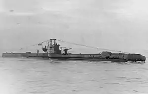 For surface running, the boats were powered by two 950-brake-horsepower (708 kW) diesel engines, each driving one propeller shaft. When submerged each propeller was driven by a 650-horsepower (485 kW) electric motor. They could reach 15 knots (28 km/h; 17 mph) on the surface and 10 knots (19 km/h; 12 mph) underwater.[3] On the surface, the third batch boats had a range of 7,500 nautical miles (13,900 km; 8,600 mi) at 10 knots (19 km/h; 12 mph) and 120 nmi (220 km; 140 mi) at 3 knots (5.6 km/h; 3.5 mph) submerged.[2]