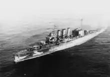 HMS Suffolk, pennant number 55, was a County-class heavy cruiser of the Royal Navy, and part of the Kent subclass. She was built by Portsmouth Dockyard, Portsmouth, UK, with the keel being laid down on 30 September 1924. She was launched on 16 February 1926, and commissioned on 31 May 1928. During the Second World War, Suffolk took part in the Norwegian Campaign in 1940 and then the Battle of the Denmark Strait in 1941, before serving in the Arctic throughout the following year. After a refit that concluded in April 1943, the cruiser served in the Far East until the end of the war. In the immediate post-war period, Suffolk undertook transport duties between the Far East, Australia and the United Kingdom before being placed in reserve in mid-1946. The vessel was sold off and then scrapped in 1948.