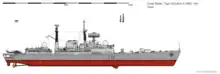 HMS York was a Batch III Type 42 destroyer of the Royal Navy. Launched on 20 June 1982 at Wallsend,[4] Tyne and Wear and sponsored by Lady Gosling, York was the last Type 42 ordered. The ship's crest was the White Rose of York, and the "red cross with lions passant" funnel badge was derived from the coat of arms of the City of York. With a maximum speed of 34 knots (63 km/h; 39 mph), she was the Royal Navy's fastest destroyer.[3]