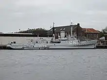The ship was removed from the Navy List in 1960.[5] After leaving service, Abraham Crijnssen was donated to the Sea Cadet Corps (Zeekadetkorps Nederland) for training purposes.[4] She was docked at The Hague from 1962 to 1972, after which she was moved to Rotterdam.[4] The ship was also used as a storage hulk during this time.[5]