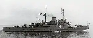 HNLMS Abraham van der Hulst was a Jan van Amstel-class minesweeper built for the Royal Netherlands Navy in the 1930s. The German invasion of the Netherlands resulted in the ship being scuttled at Enkhuizen on 14 May 1940, but was raised by the Germans and entered service as the minesweeper M 553 with Nazi Germany's Kriegsmarine.[3] The vessel was sunk by a mine off East Prussia on 21 April 1944. M 552 was raised on 20 July 1944 and towed to Stettin. There, the ship was bombed and burned out 20 August 1944. The wreck was captured by the Soviets. One source says she was returned to the Netherlands post war.[4]