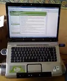 the HP xb3000 Notebook Expansion Base is a laptop docking station manufactured by Hewlett-Packard Company. Its notable features an inclining tray, a PCI expansion port 3 cable interface (with adapter for other PCI expansion port interface), and an integrated 16-bit AT hard drive bay. The device is shipped with a USB wireless receiver, wireless keyboard and mouse.