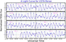 Michel Breger announced that HR 1170 is a Delta Scuti variable star in 1969, based on observations taken over 6 hours and 10 minutes on October 13, 1967. He reported that it varied with a mean amplitude of 0.08 magnitudes, over a period of 2.2 hours.[11] In 1970 it was given the variable star designation V376 Persei.[12]
