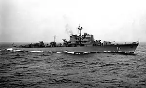 HSwMS Uppland was a Öland-class destroyer which served with the Royal Swedish Navy. Larger and more stable than previous Swedish destroyers, the vessel was launched on 15 December 1948. Armament was based around two twin mounting for semi-automatic 120 mm (4.7 in) guns, an extensive anti-aircraft defence of seven 40 mm (1.6 in) and eight 25 mm (1 in) guns and a quadruple 375 mm (15 in) anti-submarine rocket launcher, as well as torpedoes and mines. The ship was upgraded in 1963, which involved the addition of a helicopter platform amongst other alterations, and reclassified as a frigate in 1974, until ultimately being retired on 1 July 1978 as part of a strategy to remove larger combat vessels from the fleet.