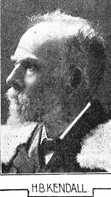 Thomas and Fanny Kendall raised ten sons and one daughter to adulthood,[5] six of the sons became Ministers in the Primitive Methodist Church;[5] though not all remained as PMs. There are ten Kendalls listed in Leary,[6] H. B. Kendall's father Charles (1818–1882), and five of his uncles (Thomas (1816–1878), Dennis (1824–1896), Joseph (1827–1890)) joined the United Methodists. Amos (1830–1909) immigrated to America and joined the Methodist Episcopal Church South, Henry (1832–1900) joined the Congregationalist Methodists and H. B. Kendall's cousin Frederick Dennis (born 1858).[5] Cousins, Henry George and his brother James Dennis Hird (later first Principal of Ruskin College) were ordained in the Church of England.