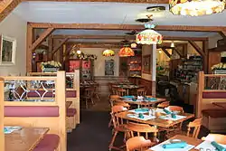 Haab's Restaurant was located in downtown Ypsilanti, Michigan, at 18 West Michigan Avenue. The restaurant had a bar area with an 30-foot-long (9.1 m) African mahagony bar and overhead ceiling fans, and two dining rooms. The decor was 19th-century with a pressed tin ceiling and features Tiffany lamps and heirlooms from the Haab family.[1] It had seating for 130.[2] The menu entrées were mainly steaks, chops, fried chicken and seafood, with the London broil being the most popular menu item.[2][3][4] The front entrance displayed an article in Monthly Detroit about Detroit area steakhouses in which the author named Haab's as his favorite