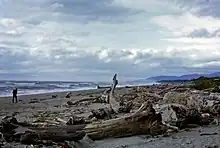 The smaller Haast Beach is on the coast of the Tasman Sea, approximately 4 kilometres (2.5 mi) west southwest of Haast Junction, on the Haast–Jackson Bay Road.