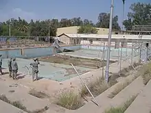 There were numerous billets, messes and a wide range of leisure facilities including swimming pools, cinemas and theatres, sports pitches, tennis courts and riding stables. It was self-contained with its own power station, water purification plant and sewage farm.[12] Water taken from the Euphrates for the irrigation systems enabled green lawns, flower beds and even ornamental Botanical Gardens.[13] After World War II the families of British personnel started living at Habbaniya and a school was started.[14]