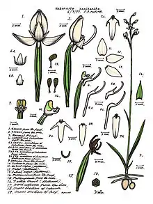 Habenaria xanthantha was first formally described in 1869 by Ferdinand von Mueller and the description was published in Fragmenta Phytographiae Australiae.[3] The specific epithet (xanthantha) is derived from the ancient Greek words xanthos (ξανθός) meaning "yellow" and anthos (ἄνθος) meaning "flower",[4] although no yellow-flowering forms have been seen in the last fifty years.[2]