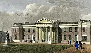 The school was founded in 1690 by a Royal Charter granted to the Worshipful Company of Haberdashers to establish a hospital for 20 boarders with £32,000 from the legacy of Robert Aske (equivalent to approximately £5M in 2019).[2] The school relocated in 1903 and currently occupies 104 acres of green belt countryside in Elstree. At its centre is Aldenham House, a Grade II* listed building, that was formerly the seat of the Lords Aldenham and home to Vicary Gibbs MP.[3] While the school once offered boarding to some students, it has since become an all-day school, with the boarding quarters having been converted to offices.