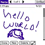 Palm's Note Pad can be used for quick drawings. With neat handwriting, 20–30 words will fit on one page; for more text, Memo Pad is the better choice. There are three sizes of pen width, plus an eraser and a background color change feature in some models. It is possible to draw a very simple map. The more "advanced" desktop version saves the Memo pad drawings to the desktop.