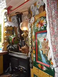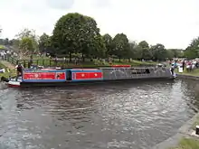 The boat's colour scheme is that which the GUCCCo. adopted in 1937 in celebration of the coronation of King George VI and Queen Elizabeth. Apart from the traditional boatman's cabin at the rear, and engine room, it has additional 18 ft (5.5 m) of cabin space forward of the engine room (of which 8 ft (2.4 m) is underneath the sheeting), which, along with te shallower draft by 1 ft (0.30 m) reduces the cargo-carrying capacity to 8 tonnes maximum. It was built to the newer width of 6 ft 10 in (2.08 m) rather than the original 7 ft ½ in (2.15 m) and with a draft of 2 ft 6 in (0.76 m) rather than the original 3 ft 6 in (1.07 m) and a length of 70 ft (21 m) rather than 71 ft 6 in (21.79 m) to make travelling the canals today easier.