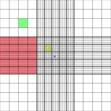 For most applications, the four large corner squares are only used. The cells that are on or touching the top and left lines are counted, but the ones on or touching the right or bottom lines are ignored.[5]