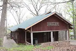 The Hagler-Cole Cabin is a historic summer cabin on Mt. Pisgah Loop in Bella Vista, Arkansas. It is a two-story wood-frame structure with a wide overhanging front gable roof, which presents a single story to the front because of a steeply sloping lot. The front has a fieldstone chimney near the center, with a corner entry to the right, and a projecting gable-roofed screen porch to the left. Built c. 1920, it is one of a few relatively unaltered cabins (of some 500 originally built) in the Bella Vista area.[2]