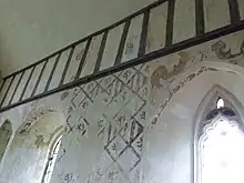 Outside the remains of the Abbey is Hailes Church. The church is older than the abbey, and was consecrated in 1175. It later served as the capella ante portas (Latin for 'chapel outside the gates') to the Abbey until the Abbey's dissolution in 1539. Inside the church are fine 14th-century wall paintings depicting St Catherine and St Christopher, on the north wall, and St Margaret and coursing scenes, on the south.[9] The church is also a Grade I listed building.[10] The church is part of the Eastern Parishes benefice, north of Winchcombe, and occasional services are held.[11]