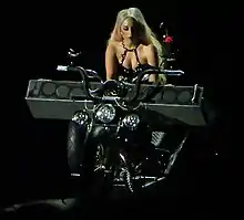 The song was also included in the setlist of her Born This Way Ball tour (2012–2013), where she played the song on a keyboard that was installed on a motorbike.[51] To Kwaak Je-yup of The Korea Times was positive about the performance of the song during the tour saying that, "The highlight of the night was her first slow jam 'Hair,' which she introduced as her favorite track on the 'Born This Way' album. (...) She flubbed her line once and admitted it right away — 'I'm getting too excited (that) I forgot my lines,' she said — but the moment made the experience personal."[52] On the second night of Gaga's show in the Philippines, she addressed the protests by Christian groups against her performances in the country, directly before performing "Hair". While playing the piano she stated that she is aware of the issues around her image and music, she emphasized that she respects all kinds of religion, people and culture – including Filipino culture.[53] She also said that she respects that everyone is entitled to their own opinion, but stressed "What I don’t respect is homophobia and hatred…I reject intolerance to the gay community."[53] This drew cheers from the audience. She went on to say that she is aware some are using her name to spread hatred but intended to counter this by continuing to spread "positivity" in her own way.[53]