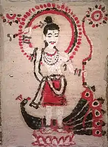The Hajongs believe in some evil spirits like Machang Dyao, Jarang Dyao, Bhut, Muilâ Dyao, Jugni Dyao, Daini etc. They adore and worship different gods and goddess like Kali, Durga, Lakshmi, Saraswati, Kamakhya, Manasa, Basanti and others. They also practice some of their traditional religious rituals. Kartik puja among the Hajongs are known as Kâtkâ pujâ and Manasa puja is known as Kani Dyao puja. The day of Lakshmi puja is referred to as 'Kujâi Ghor' .[5] In Bastu Pujâ tortoises and pigeons are sacrificed for Bastu.[6]