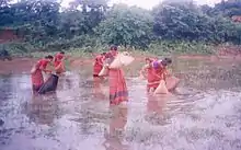 The Hajong people are an ethnic group from Northeast India and northern parts of Bangladesh.[2] The majority of the Hajongs are settled in India and are predominantly rice-farmers. They are said to have brought wet-field cultivation to Garo Hills, where the Garo people used slash and burn method of agriculture.[3] Hajong have the status of a Scheduled Tribe in India[4] and they are the fourth largest tribal ethnicity in the Indian state of Meghalaya.[5]