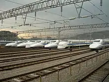 View of Hakata Shinkansen Depot yard from platform of Hakata-Minami Station (March 2008)