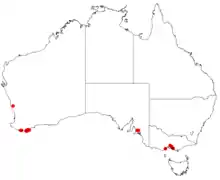 It is found in an area along the south coast in the Great Southern region of Western Australia between Denmark and just east of Albany where it grows on sandy soils over granite.[4] It is often found amongst coastal heath communities.[3]