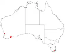 Hakea hookeriana is found in an area in weastern part of Fitzgerald River National Park along the south coast of the Goldfields-Esperance region of Western Australia where it is found among rocks and rocky outcrops on cliffs and gullies growing in quartzite soils.[3] It is often part of scrubland communities including Banksia heliantha.[4]