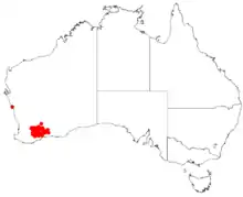 This species grows in the central and eastern wheatbelt region of Western Australia in sandy loam and lateritic gravelly soils. Also in woodlands of the Hyden-Newdgate district.[3]