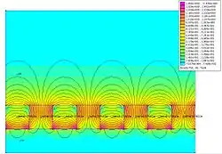 - There is no stray field produced (in the ideal case) on the opposite side. This helps with field confinement, usually a problem in the design of magnetic structures.