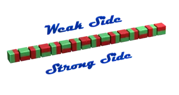 The rotating pattern of permanent magnets (on the front face; on the left, up, right, down) can be continued indefinitely and have the same effect. The effect of this arrangement is roughly similar to many horseshoe magnets placed adjacent to each other, with similar poles touching.
