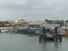 Built on a sand pit at the south-eastern fringe of St. Mary's Island, Mocam Town emerged as one of the villages formed during the tenure of Alexander Grant as Commandant of St. Mary's Island, as Grant outlined a system whereby different ethnic communities would have a separate village on the island.[3][4] Mocam Town was the first Aku settlement, before the Akus started shifting to New Town (later known as 'Banjul Central').[5] Mocam Town was bordered by Jolof Town, a settlement of Wolof people from Goree Island.[4] Eventually the vacant spaces between the villages become occupied, gradually merging into a single urban area.[4] Mocam Town received migrants from Kombo and upriver, seeking work opportunities in the colonial capital.[4]