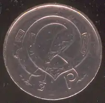 The decimal halfpenny (1⁄2p) (Irish: leathphingin) coin was the smallest denomination of the Irish pound. It was first issued when the Irish currency was decimalised on Decimal Day, 15 February 1971. It was one of three new designs introduced all in bronze and featuring ornamental birds on the reverse. The coin value was weakened by inflation and very few were produced beyond the initial run for 1971. It was removed from circulation and demonetised on 1 January 1987.
