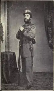 The Halifax Volunteer Battalion (1860–1868) included six companies that were raised in present-day Halifax Regional Municipality. The six companies included the Scottish Rifles, Chebucto Grays, Mayflower Rifles, Halifax Rifles, Irish Volunteers and Dartmouth Rifles which were all raised in the fall of 1859.[1] The upper ranks of the battalion was made up of distinguished people from the community filling the ranks of officers. The battalion served ceremonial functions, raised money for charities as well as defended the city against possible military threat during the Fenian Raids. The present-day The Halifax Rifles (RCAC) descended from the 63rd regiment of the Battalion.