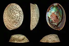 Haliotis iris, common name pāua, blackfoot pāua or rainbow abalone, is a species of edible sea snail, a marine gastropod mollusk in the family Haliotidae, the abalones.[2]